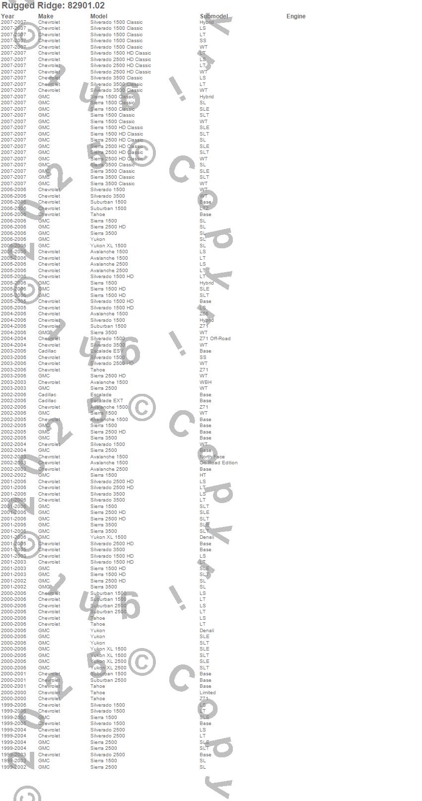 Avalanche 1500, Avalanche 2500, Escalade, Escalade ESV, Escalade EXT, Sierra 1500, Sierra 1500 Classic, Sierra 1500 HD, Sierra 1500 HD Classic, Sierra 2500, Sierra 2500 HD, Sierra 2500 HD Classic, Sierra 3500, Sierra 3500 Classic, Silverado 1500, Silverado 1500 Classic, Silverado 1500 HD, Silverado 1500 HD Classic, Silverado 2500, Silverado 2500 HD more…