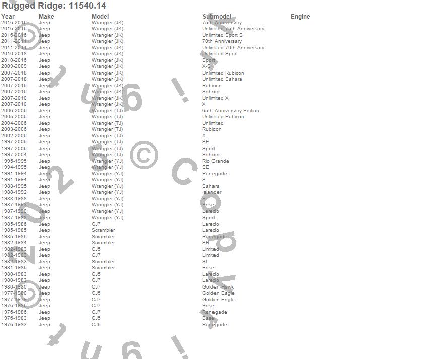 CJ5, CJ7, Scrambler, Wrangler (JK), Wrangler (LJ), Wrangler (TJ), Wrangler (YJ), Jeep, 2016, 2015, 2014, 2013, 2012, 2011, 2010, 2009, 2008, 2007, 2006, 2005 more…
