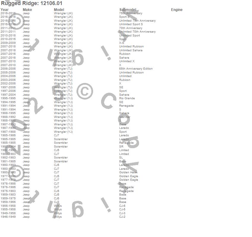 CJ-2A, CJ-3A, CJ-3B, CJ3, CJ5, CJ6, CJ7, Scrambler, Willys, Wrangler (JK), Wrangler (LJ), Wrangler (TJ), Wrangler (YJ), Jeep, 2014, 2013, 2012, 2011, 2010, 2009 more…