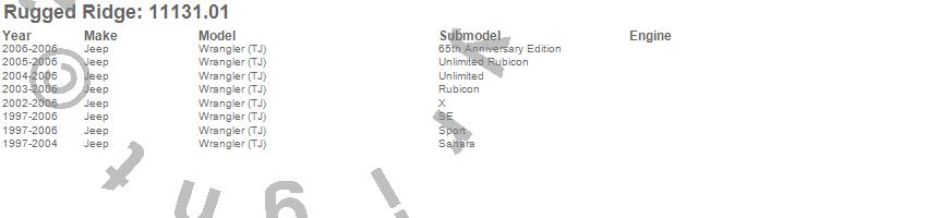 Below is an abreviated list of applications for the Antenna. Wrangler (LJ), Wrangler (TJ), Jeep, 2006, 2005, 2004, 2003, 2002, 2001, 2000, 1999, 1998, 1997 more…
