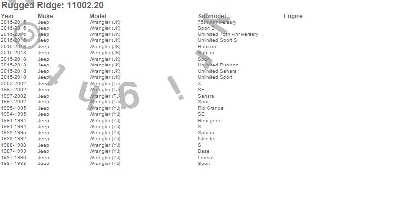 Below is an abreviated list of applications for the Heated Mirror. Wrangler (TJ), Wrangler (YJ), Jeep, 2002, 2001, 2000, 1999, 1998, 1997, 1995, 1994, 1993, 1992, 1991, 1990, 1989, 1988, 1987 more…