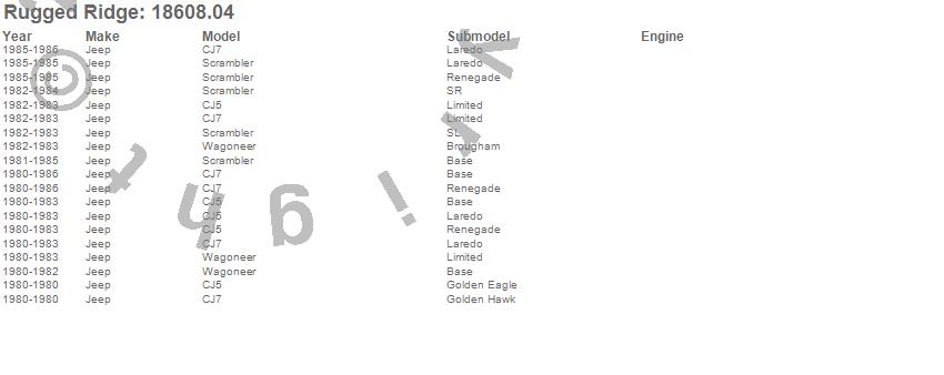Below is an abreviated list of applications for the Transmission Mount. CJ5, CJ7, Scrambler, Wagoneer, Jeep, 1986, 1985, 1984, 1983, 1982, 1981, 1980 more…