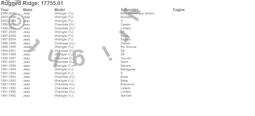 Cherokee (XJ), Wrangler (TJ), Wrangler (YJ), Jeep, 2006, 2005, 2004, 2003, 2002, 2001, 2000, 1999, 1998, 1997, 1996, 1995, 1994, 1993, 1992, 1991 more…