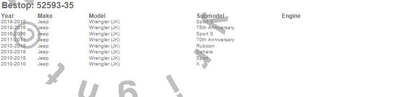 Below is an abreviated list of applications for the Bikini Top Safari Style.