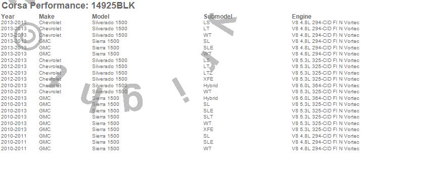 Below is an abreviated list of applications for the Sport Cat-Back Exhaust System.