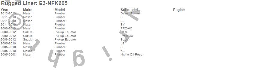 Below is an abreviated list of applications for the Rugged Cover Tonneau Cover.