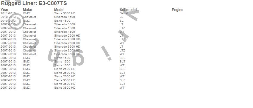 Below is an abreviated list of applications for the Rugged Cover Tonneau Cover.