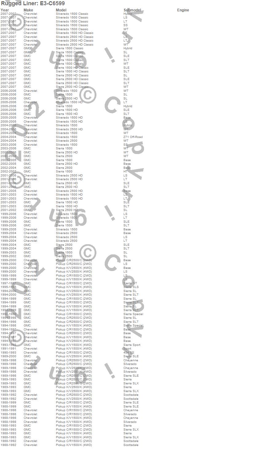 Below is an abreviated list of applications for the Rugged Cover Tonneau Cover.