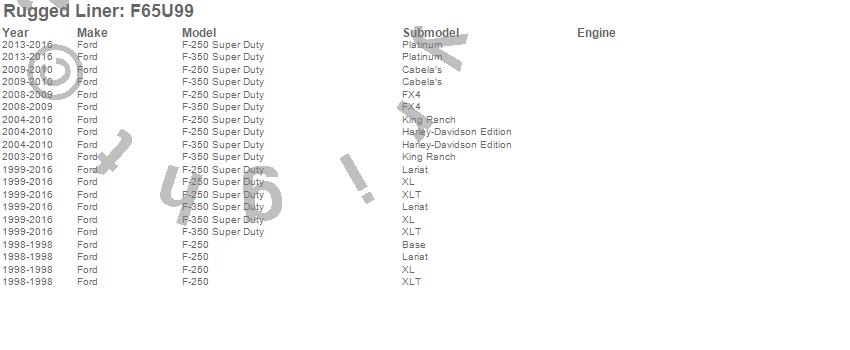 Below is an abreviated list of applications for the Rugged Liner Under Rail Bed Liner.