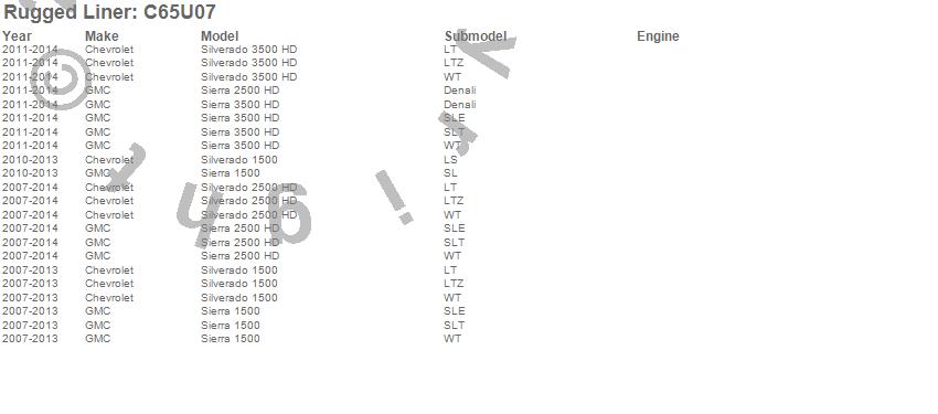 Below is an abreviated list of applications for the Rugged Liner Under Rail Bed Liner.