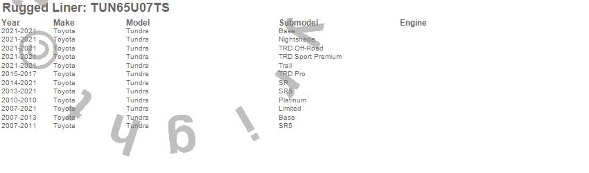 Rugged Liner Rugged Liner Under Rail Bed Liner TUN65U07TS Features: