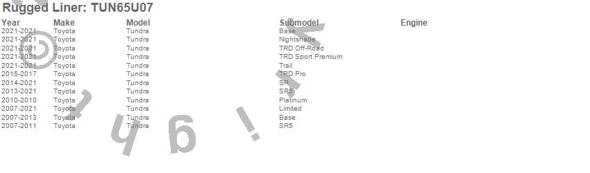 Rugged Liner Rugged Liner Under Rail Bed Liner TUN65U07 Features: