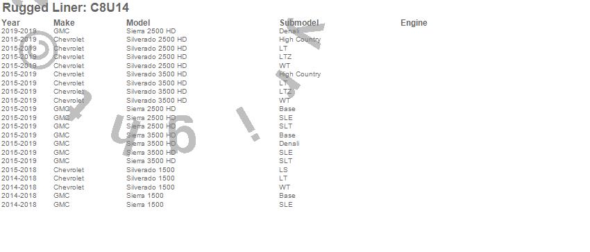 Rugged Liner Rugged Liner Under Rail Bed Liner C8U14 Features: