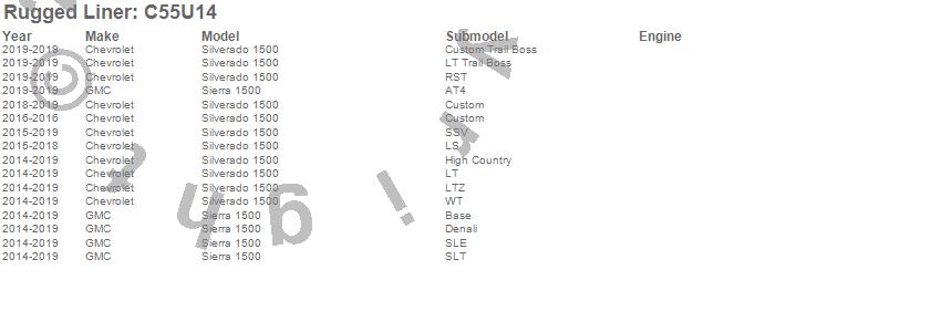 Rugged Liner Rugged Liner Under Rail Bed Liner C55U14 Features: