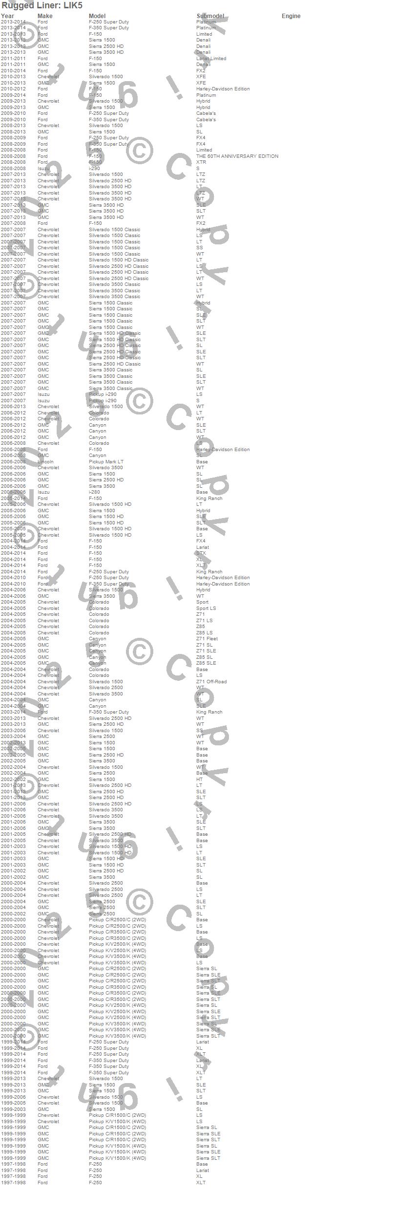C1500 Pickup, C2500 Pickup, C3500 Pickup, Canyon, Colorado, F-150, F-250, F-250 Super Duty, F-350 Super Duty, i-280, i-290, K1500 Pickup, K2500 Pickup, K3500 Pickup, Mark LT, Sierra 1500, Sierra 1500 Classic, Sierra 1500 HD, Sierra 1500 HD Classic, Sierra 2500 more…