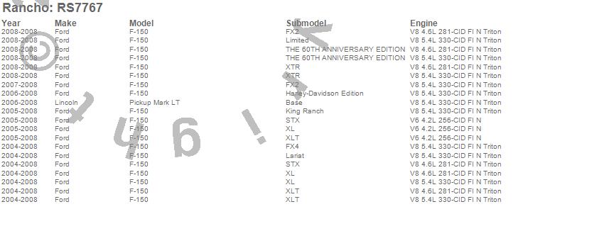 Below is an abreviated list of applications for the RS7000MT Monotube Shock.