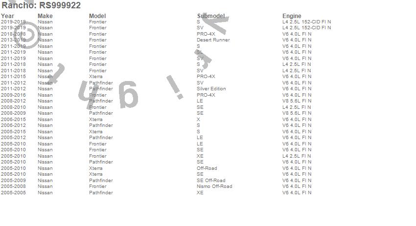 Below is an abreviated list of applications for the QuickLIFT Quick-Strut. Frontier, Pathfinder, Xterra, Nissan, 2015, 2014, 2013, 2012, 2011, 2010, 2009, 2008, 2007, 2006, 2005 more...