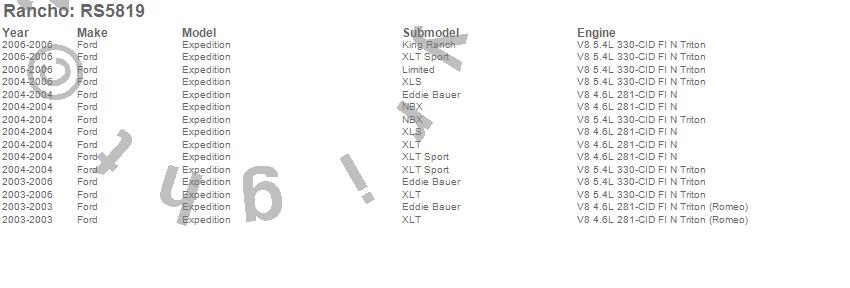Below is an abreviated list of applications for the RS5000 Series Suspension Strut Assembly.