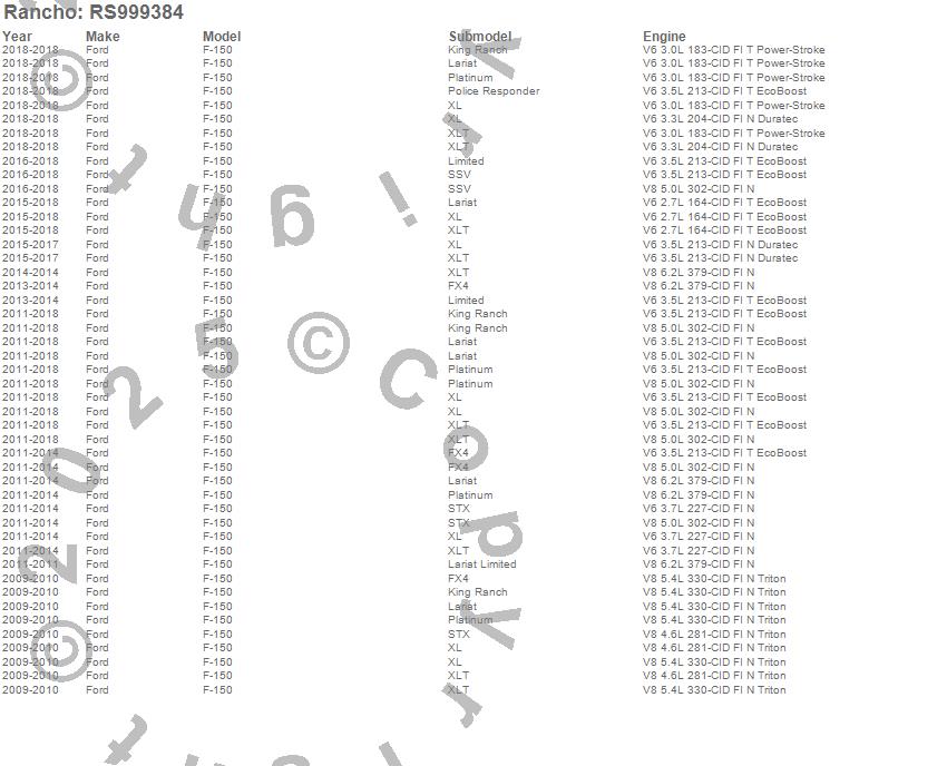 Below is an abreviated list of applications for the RS9000XL Shock Absorber.