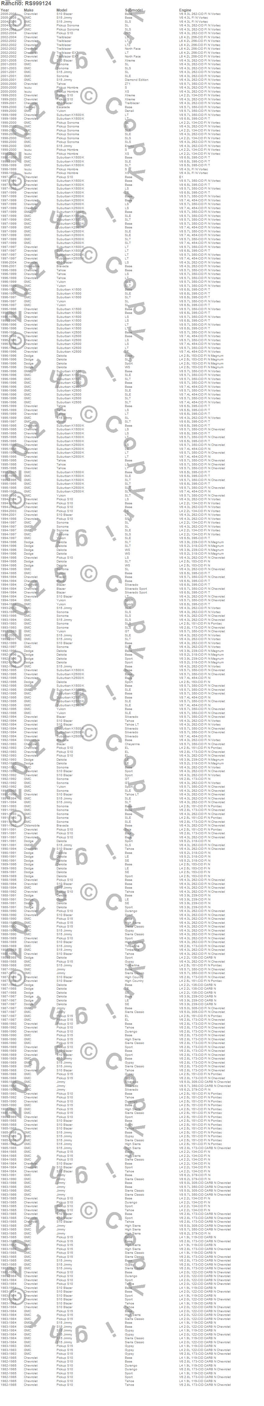 Blazer, Bravada, Dakota, Escalade, Hombre, Jimmy, K1500 Suburban, K2500 Suburban, K2500 Suburban (Canadian), S10 Blazer, S10 Blazer (Canadian), S10 Pickup, S15 Jimmy, S15 Pickup, Sonoma, Tahoe, Trailblazer, Trailblazer EXT, Yukon, Cadillac more…