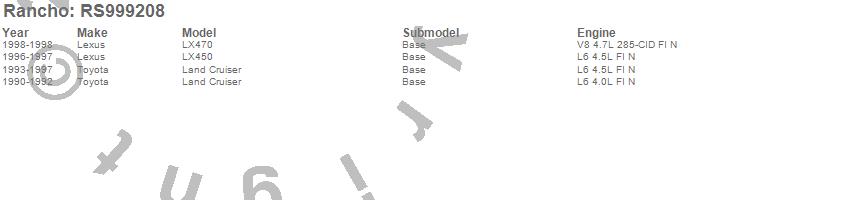 Below is an abreviated list of applications for the RS9000XL Shock Absorber.