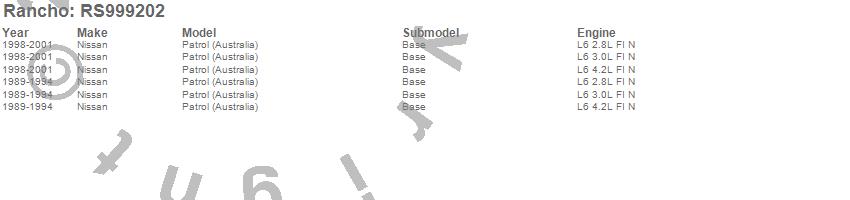 Below is an abreviated list of applications for the RS9000XL Shock Absorber.
