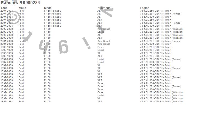 Below is an abreviated list of applications for the RS9000XL Shock Absorber.