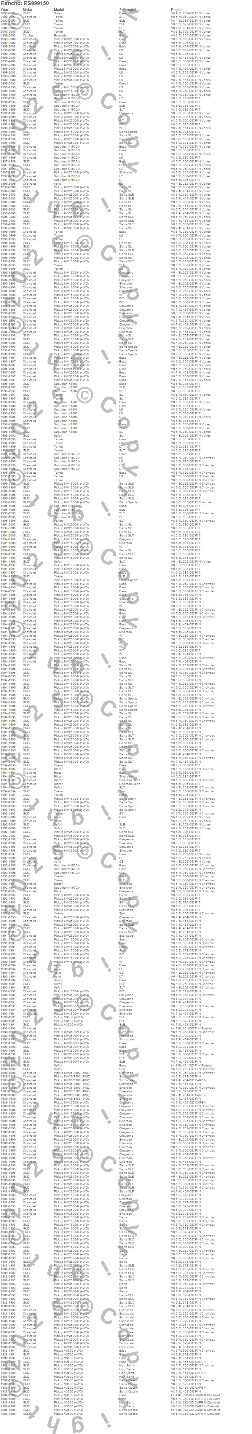 Astro, Blazer, Escalade, K1500, K1500 Pickup, K1500 Suburban, K2500 Pickup, K3500 Pickup, Safari, Tahoe, V3500 Pickup, Yukon, Cadillac, Chevrolet, GMC, 2005, 2004, 2003, 2002, 2001 more…