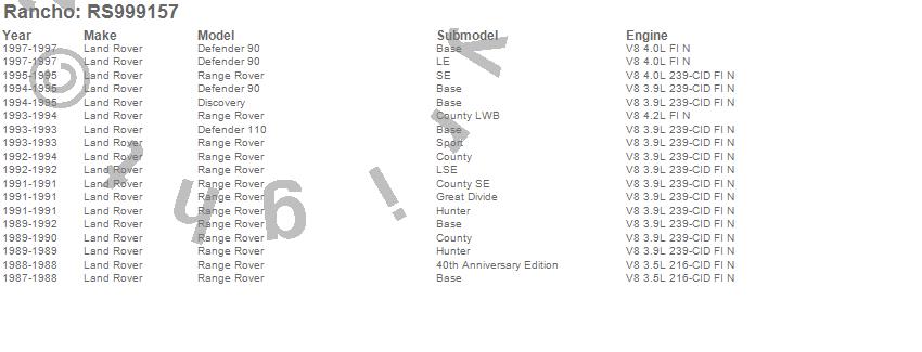 Below is an abreviated list of applications for the RS9000XL Shock Absorber.