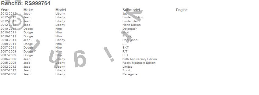 Below is an abreviated list of applications for the RS Coil Over Shock Absorber.