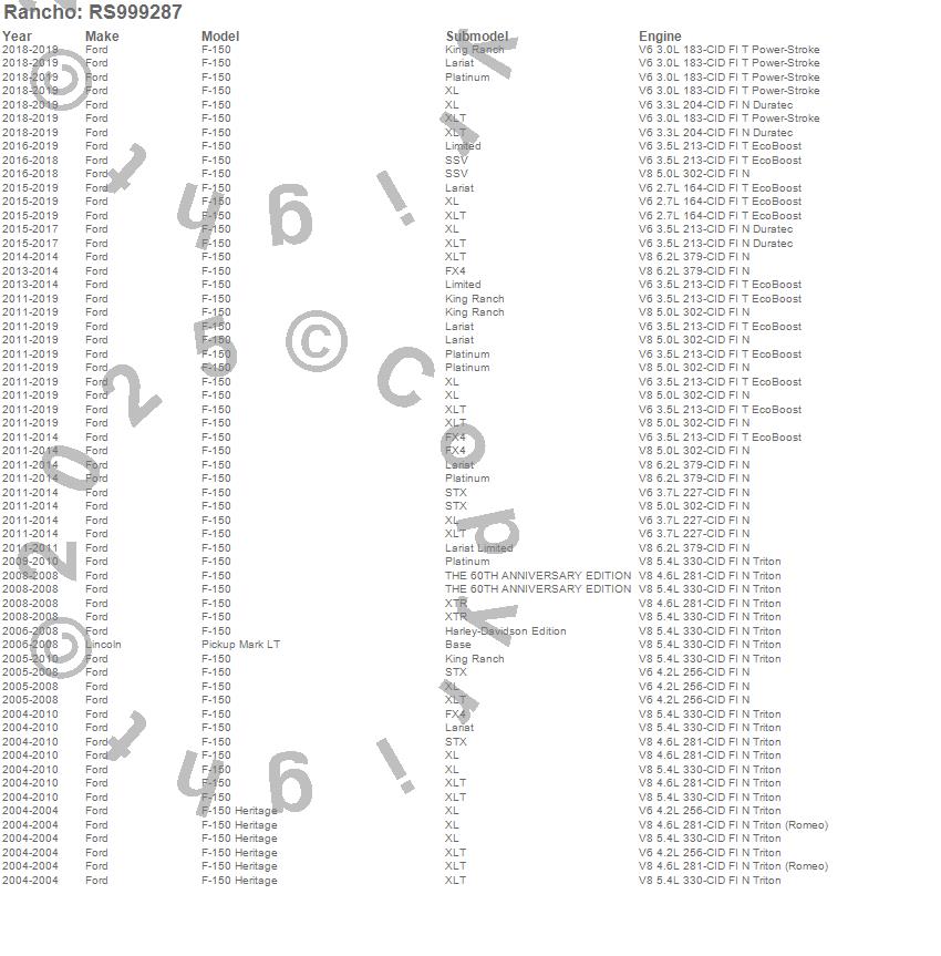 Below is an abreviated list of applications for the RS9000XL Shock Absorber.