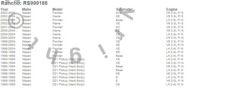 Below is an abreviated list of applications for the RS9000XL Shock Absorber.