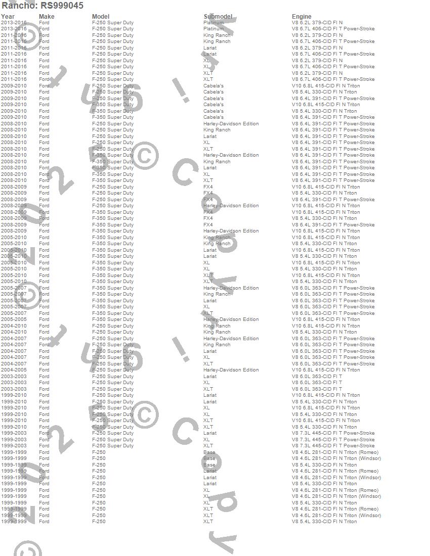 Below is an abreviated list of applications for the RS9000XL Shock Absorber.