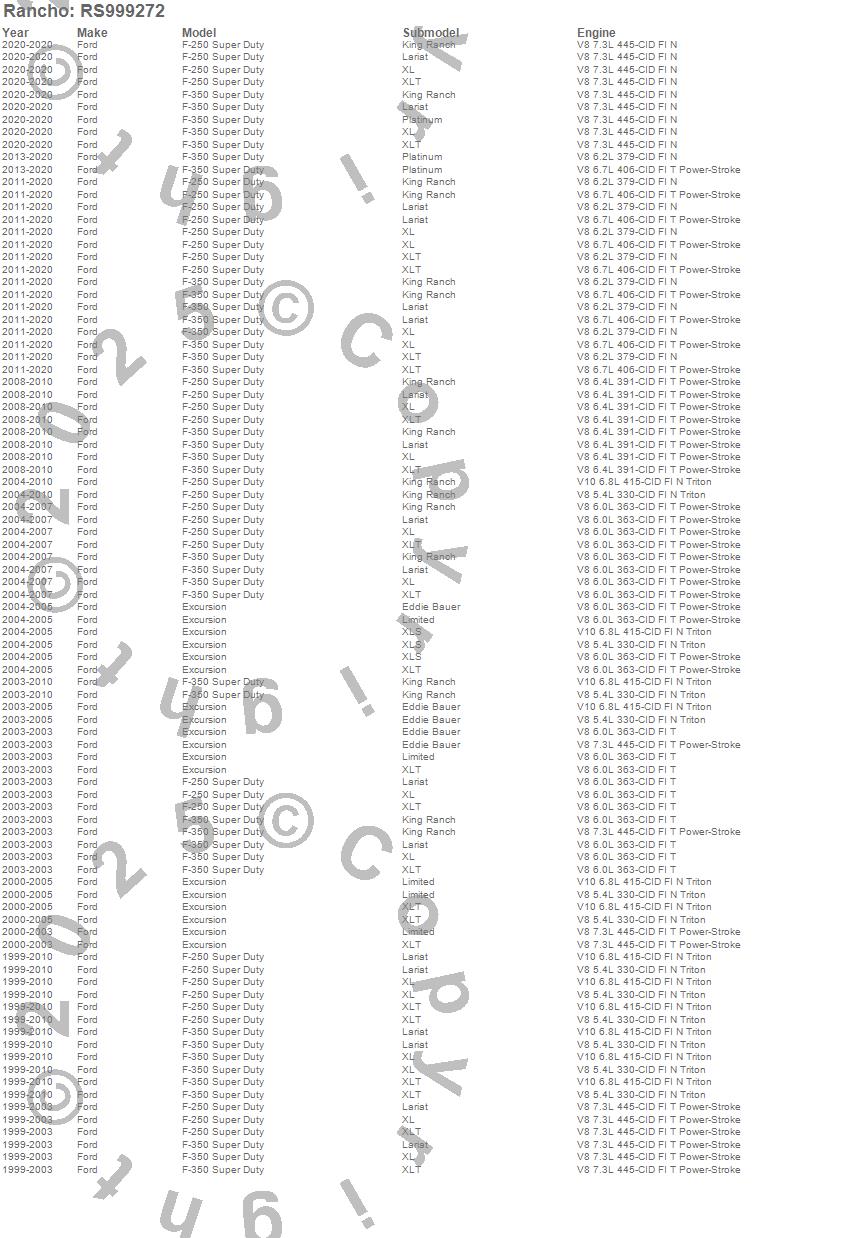 Below is an abreviated list of applications for the RS9000XL Shock Absorber.