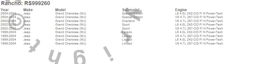 Below is an abreviated list of applications for the RS9000XL Shock Absorber.