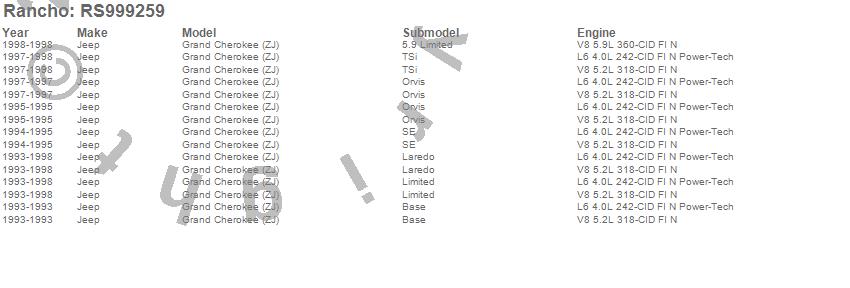Below is an abreviated list of applications for the RS9000XL Shock Absorber.