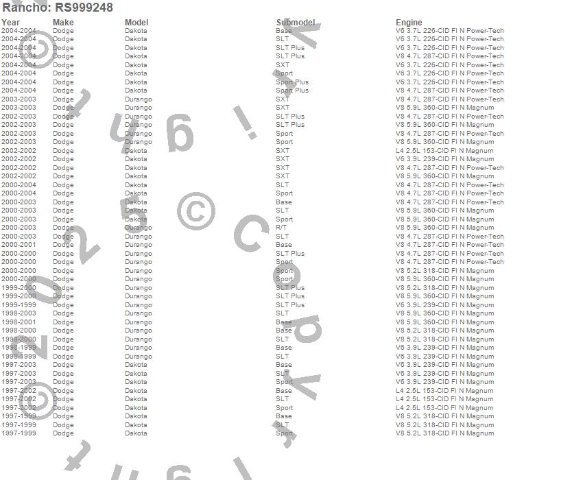 Dakota, Durango, Dodge, 2004, 2003, 2002, 2001, 2000, 1999, 1998, 1997 more…
