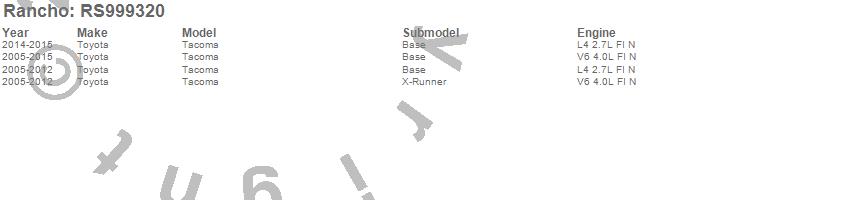 Below is an abreviated list of applications for the RS9000XL Shock Absorber.