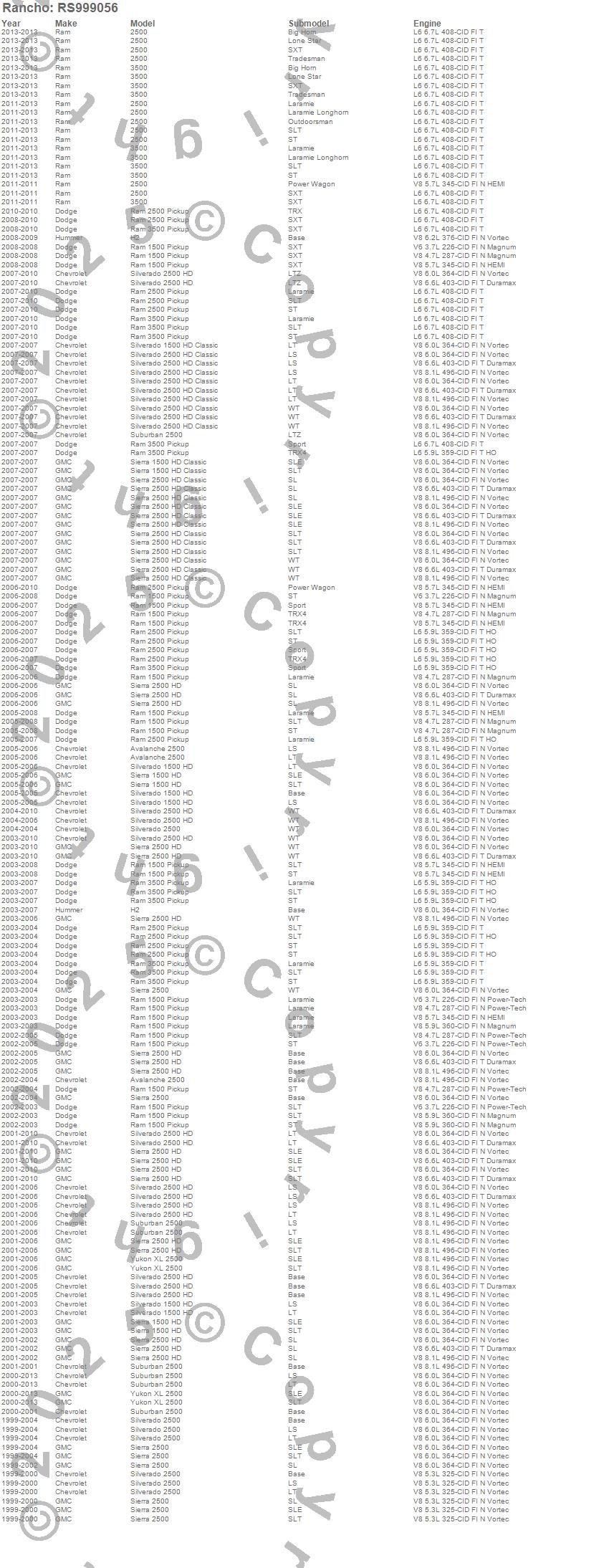 2500, 3500, Avalanche 2500, H2, Ram 1500, Ram 2500, Ram 3500, Sierra 1500 HD, Sierra 1500 HD Classic, Sierra 2500, Sierra 2500 HD, Sierra 2500 HD Classic, Silverado 1500 HD, Silverado 1500 HD Classic, Silverado 2500, Silverado 2500 HD, Silverado 2500 HD Classic, Suburban 2500, Yukon XL 2500, Chevrolet more…