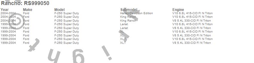 Below is an abreviated list of applications for the RS9000XL Shock Absorber.