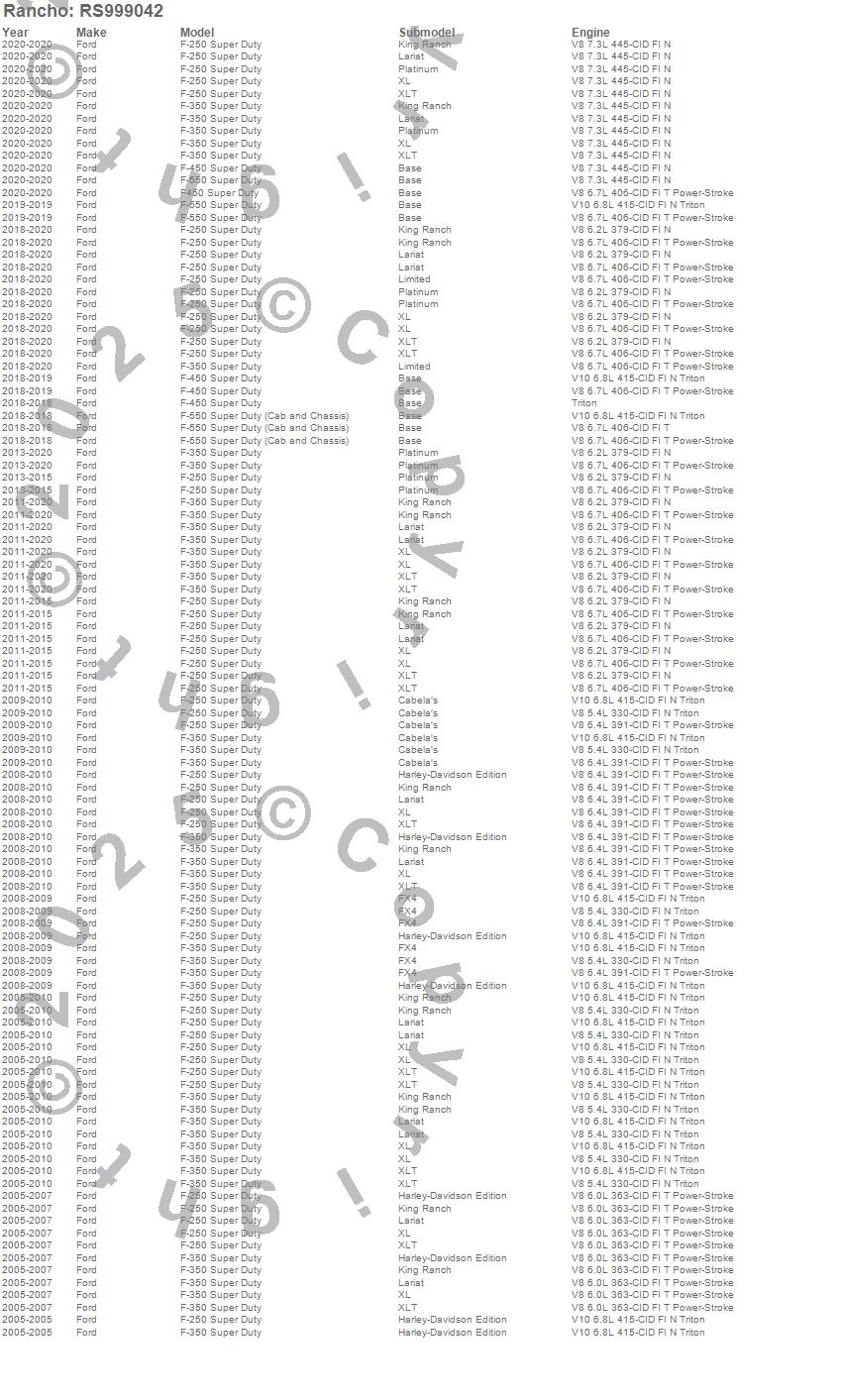 Below is an abreviated list of applications for the RS9000XL Shock Absorber.