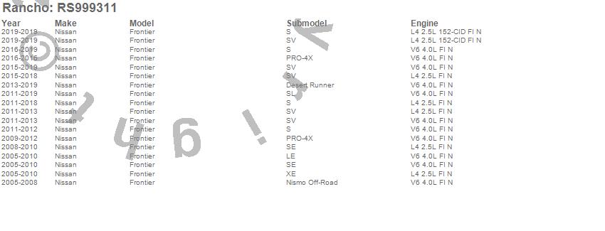 Below is an abreviated list of applications for the RS9000XL Shock Absorber.