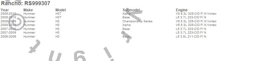 Below is an abreviated list of applications for the RS9000XL Shock Absorber.