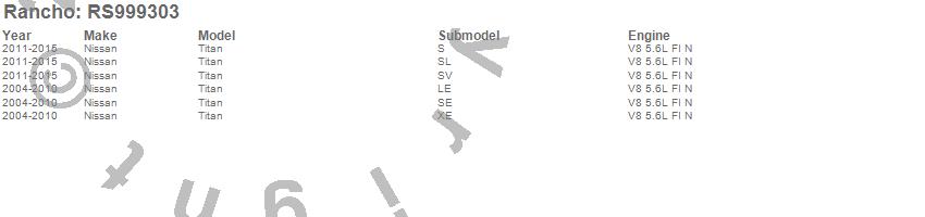 Below is an abreviated list of applications for the RS9000XL Shock Absorber.