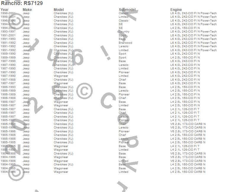 Cherokee (XJ), Wagoneer, Jeep, 2001, 2000, 1999, 1998, 1997, 1996, 1995, 1994, 1993, 1992, 1991, 1990, 1989, 1988, 1987, 1986, 1985 more…