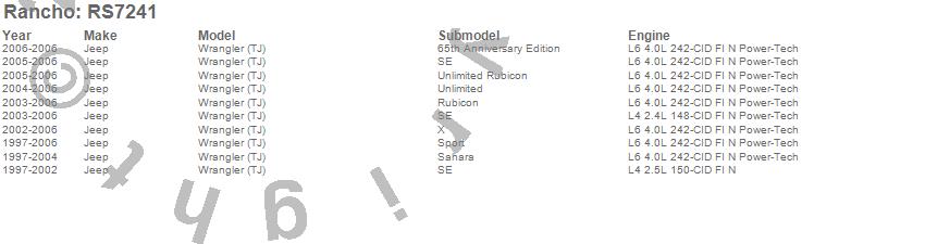 Below is an abreviated list of applications for the RS7000MT Monotube Shock.