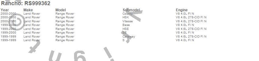 Below is an abreviated list of applications for the RS9000XL Shock Absorber.