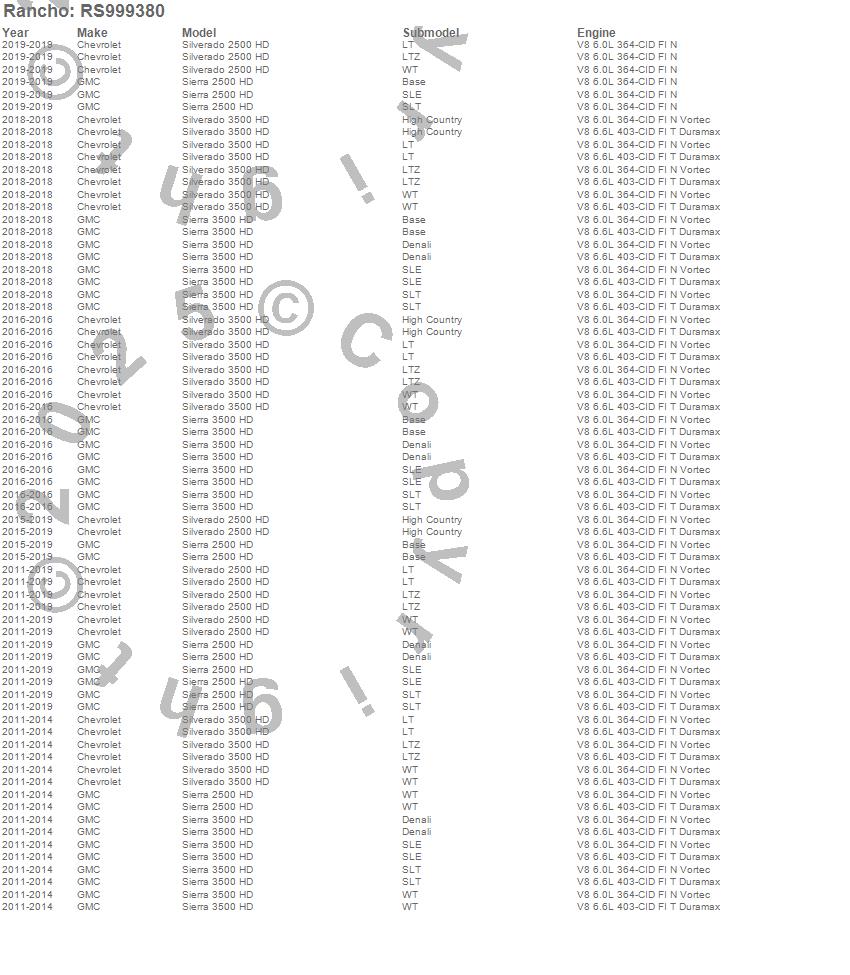 Below is an abreviated list of applications for the RS9000XL Shock Absorber.
