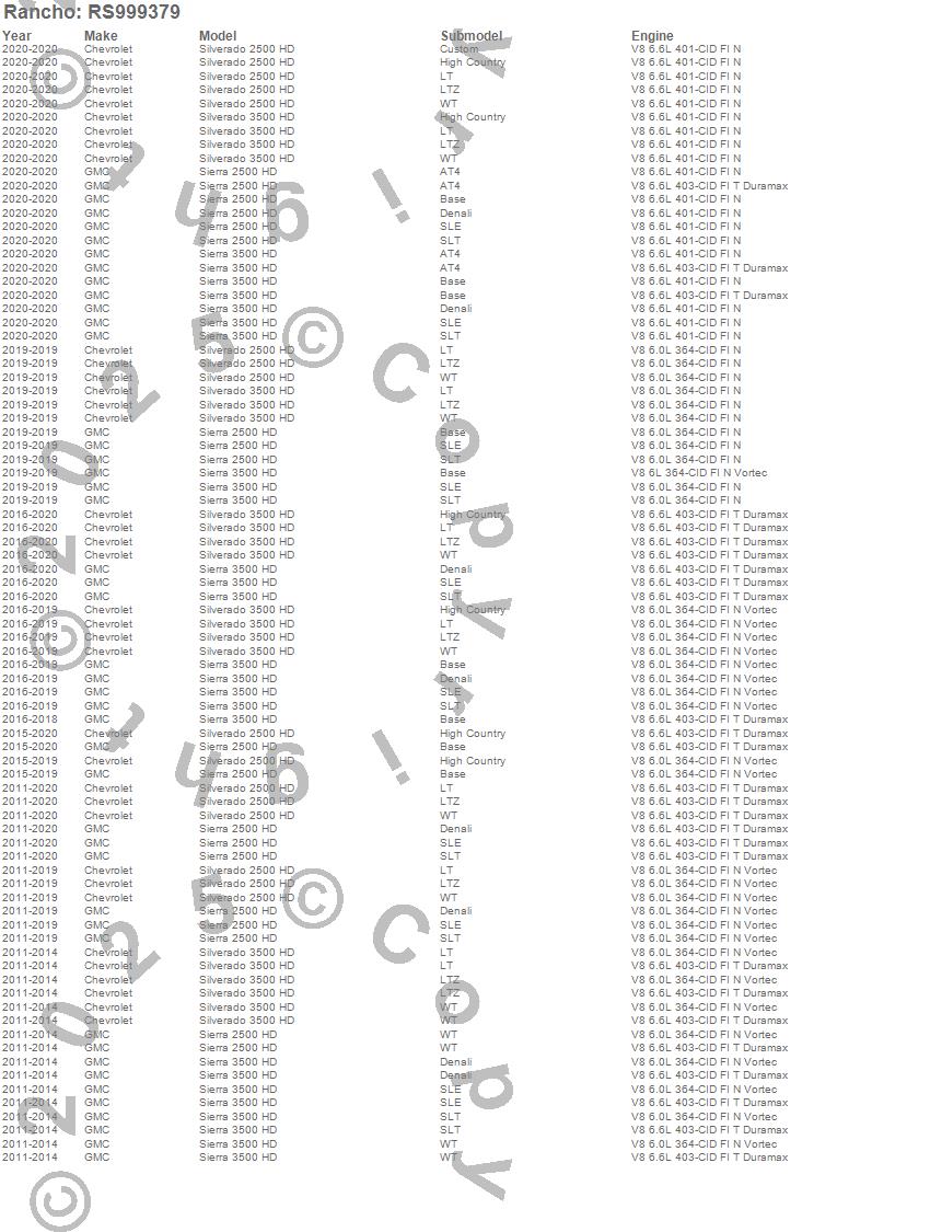 Below is an abreviated list of applications for the RS9000XL Shock Absorber.