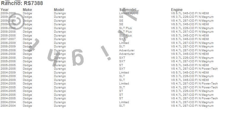 Below is an abreviated list of applications for the RS7000MT Monotube Shock.